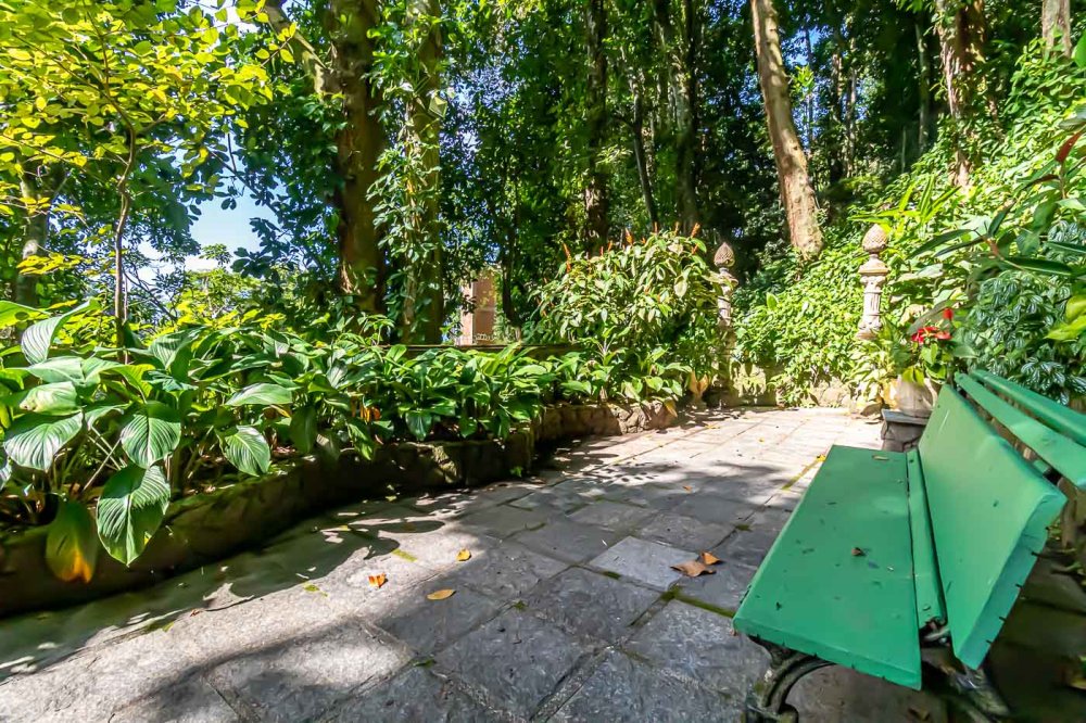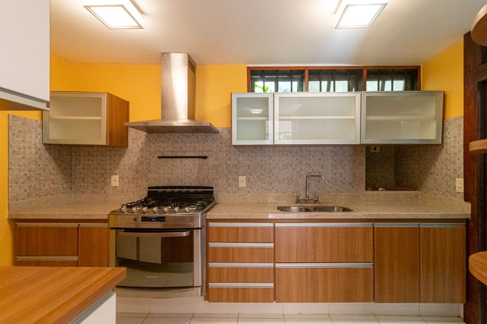 2º pavimento: 153m²; Entrada imponente com portas duplas, amplo hall de entrada; Salão com 40m² em 02 ambientes, acesso a deck de 26m², com ar bucólico, aconchegante e vista para mata atlântica; Lavabo; Cozinha com armários planejados, forno embutido e coifa; Área de serviço com dependência completa, espaço para despensa e área para guarda.