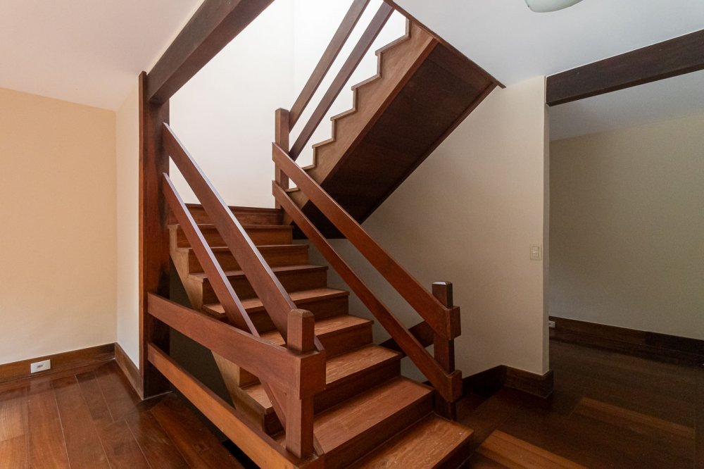 1º pavimento: 174m²; 4 Quartos, sendo uma suíte máster com banheira e box separados, com vista para o jardim e verde; 2 quartos servidos por banheiro social e 4º quarto atendido por banheiro ligado à circulação; os 3 quartos da frente com acesso à varanda e área externa.