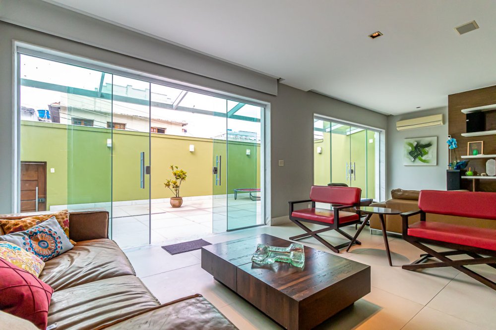 Casa 01: Casa triplex de vila, com 595m², sistema de captação e filtragem da água da chuva, ar central por todo imóvel, e espaço para comportar em torno de 5 carros na garagem.