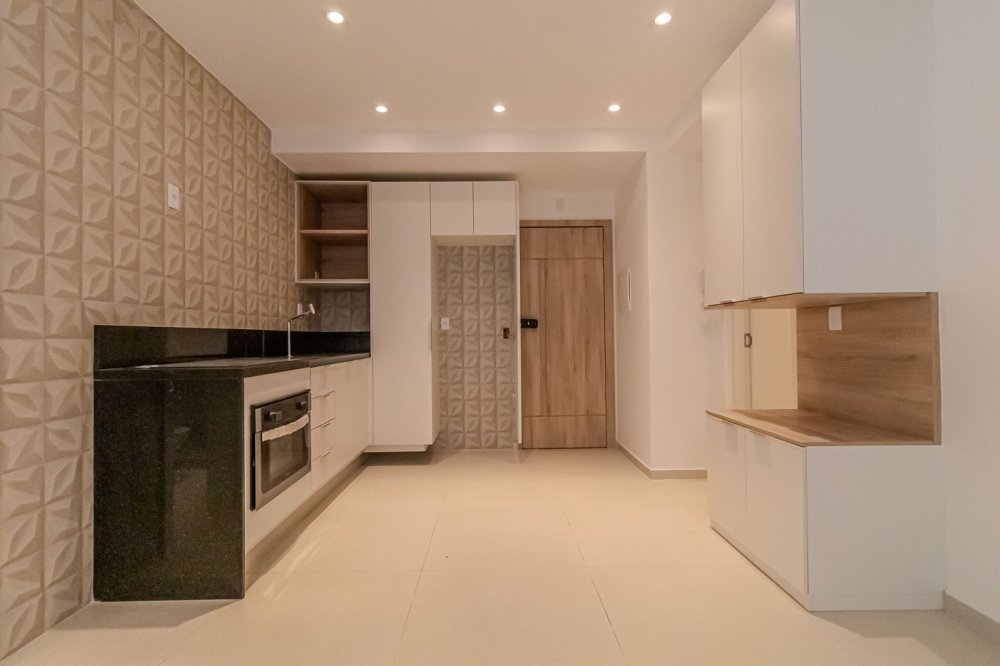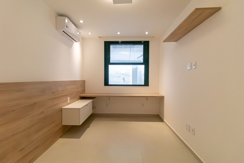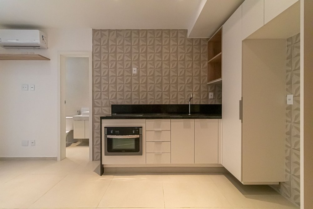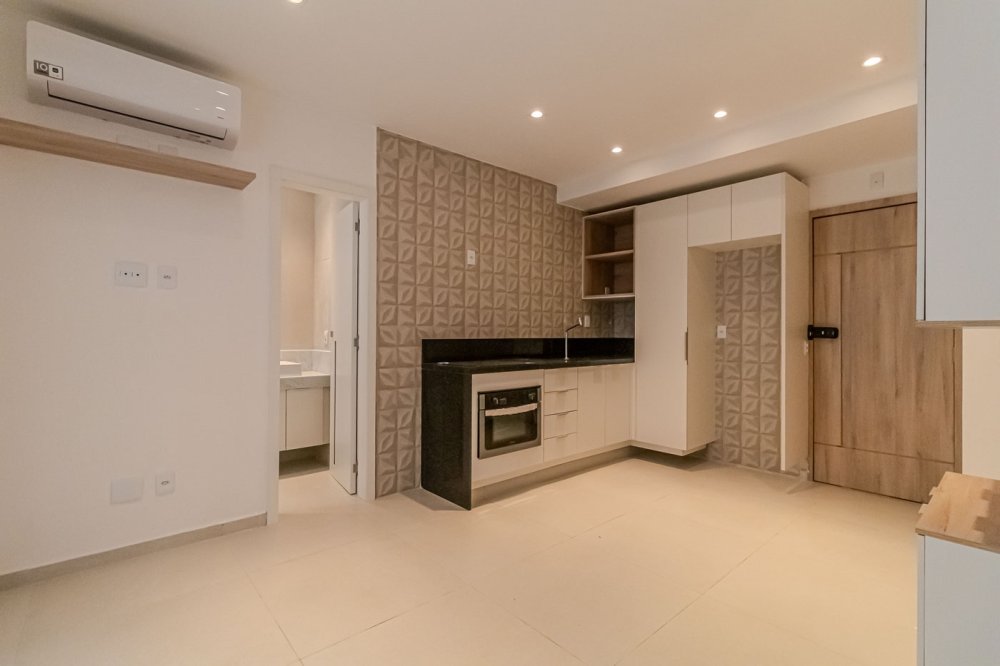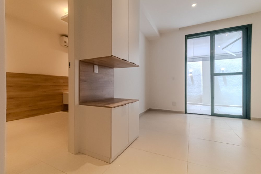 Descrição ambientes: 58,04m². Edifício histórico revitalizado, reformado e planejado por arquiteta, com armários planejados assinados pela Romanzza, piso porcelanato 60x60 em todos os ambientes. Sala com preparação para TV, prateleira e split; cozinha com bancada, armários, cooktop e forno embutido; quarto com armário, mesa lateral e painel de cabeceira, preparação para TV, mesa de trabalho e split; banheiro com bancada e armário; garden com bancada gourmet e armários, piscina com hidromassagem e cromoterapia, toldo elétrico com proteção solar para maior privacidade, deck em madeira ecológica; porta com fechadura eletrônica.