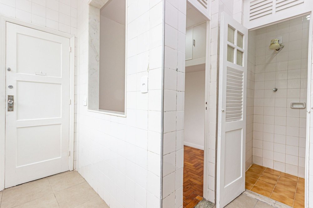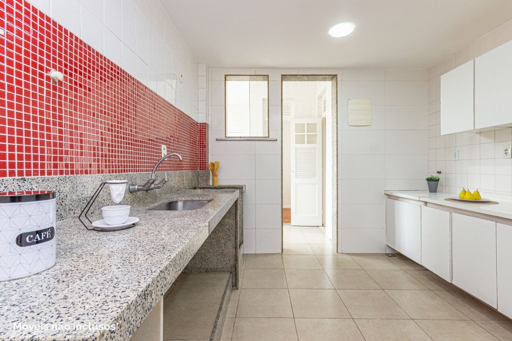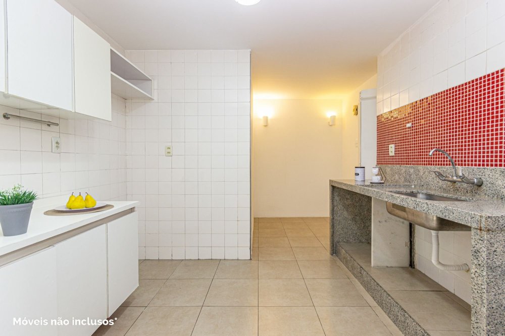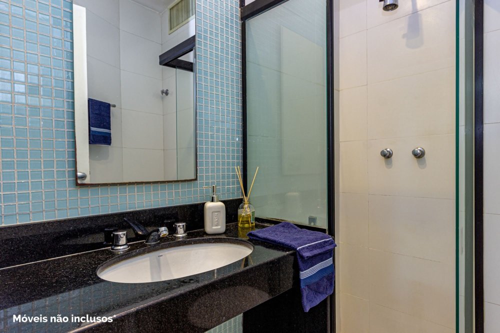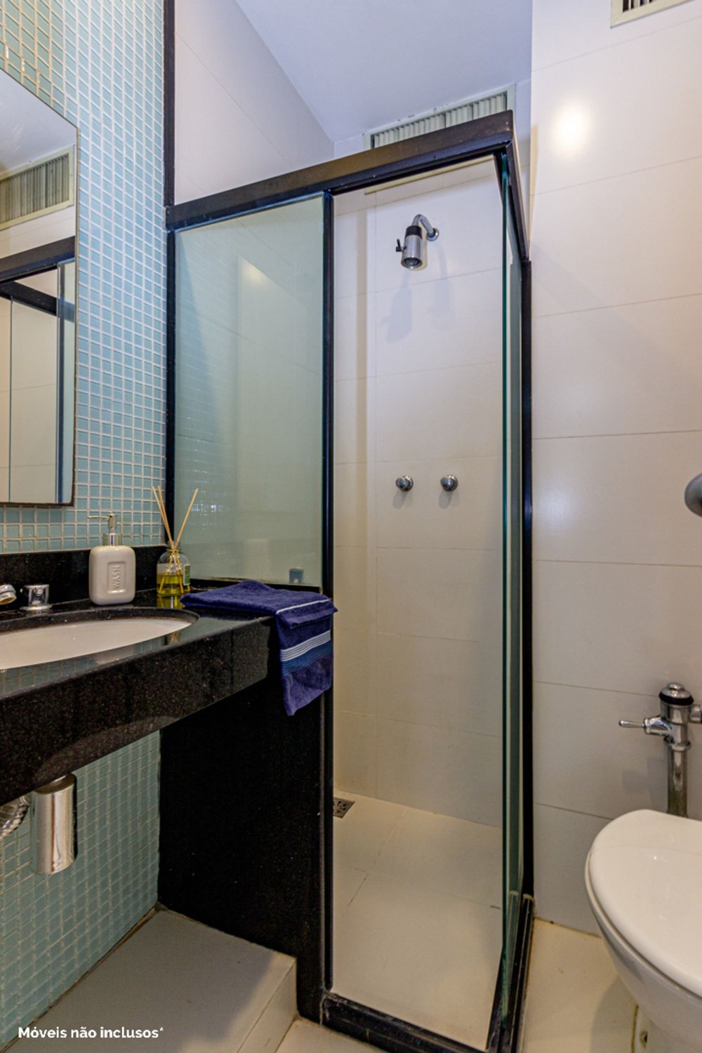 118 m²; hall de entrada; sala ampla e iluminada; 3 quartos, sendo 1 suíte, todos com armários planejados e ar-condicionado; banheiros com box blindex; copa-cozinha com armários; área de serviço ampla e arejada; dependência completa.