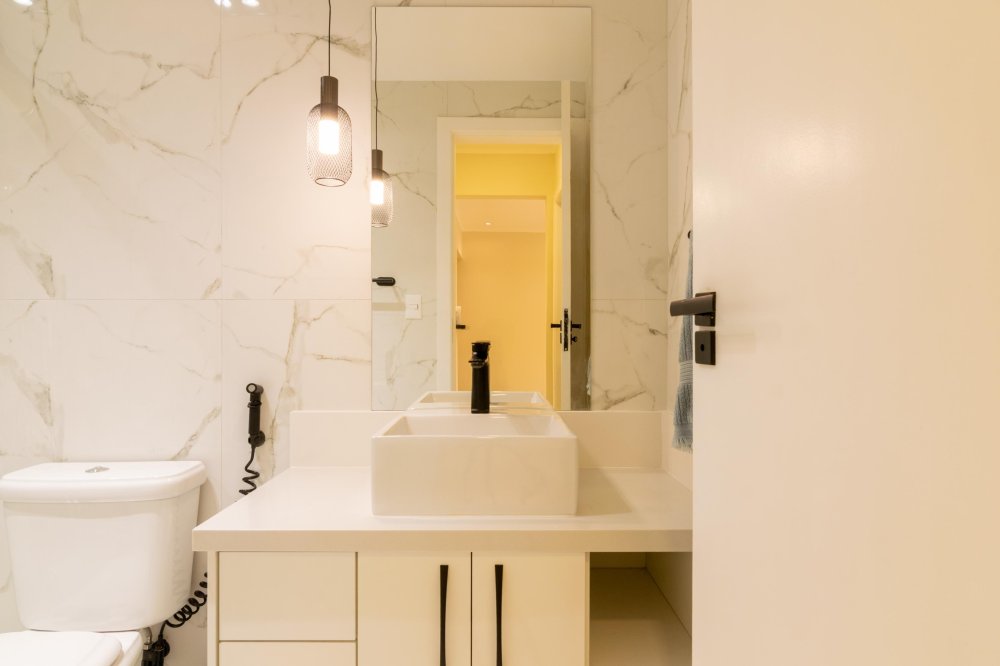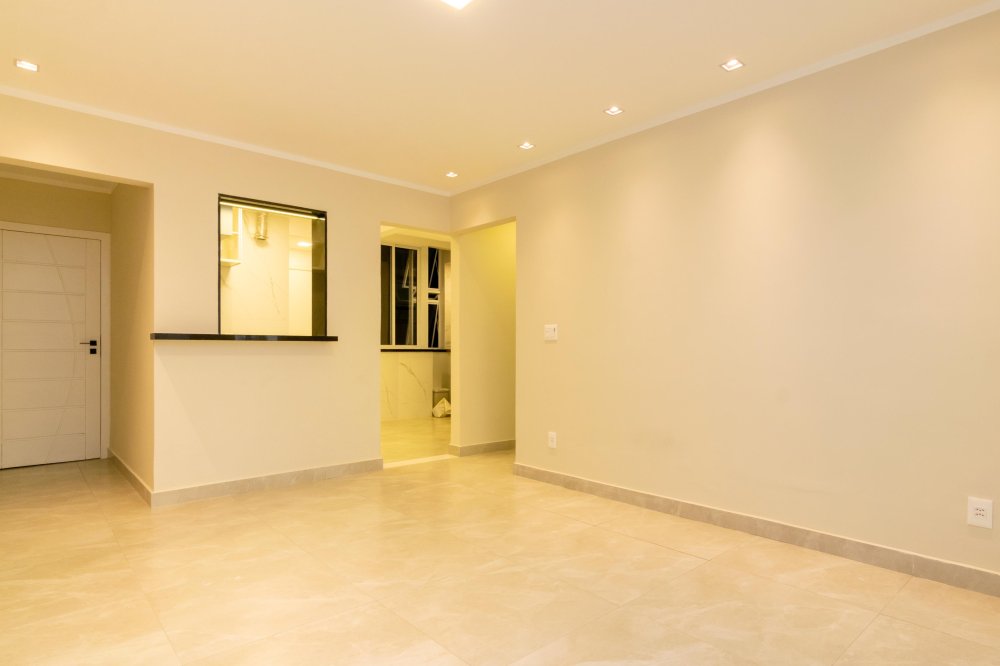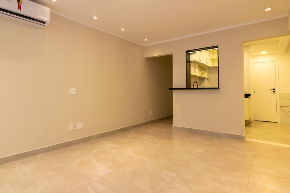 Descrição dos Ambientes: 75 m²; sala em dois ambientes com piso em porcelanato e split; 2 quartos amplos com split, iluminados e bem ventilados; cozinha moderna com bancada e cooktop por indução; área de serviço com tanque e instalação para máquina de lavar; banheiro social.